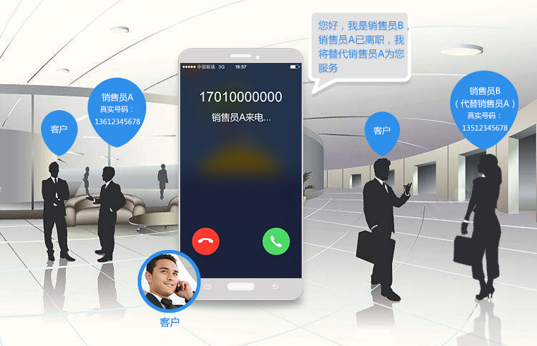 客户只需拨打1个企业号码,不需随业务人员离职而频繁变更联系号码